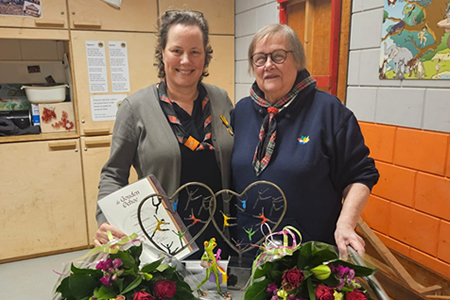 Tijdens de nieuwjaarsbijeenkomst van Scouting Sint Joris is Stefan in het zonnetje gezet door Astrid en Corine. Zij verrasten hem met de uitreiking van de Gouden Oehoe, een waarderingsteken van Scouting Nederland.